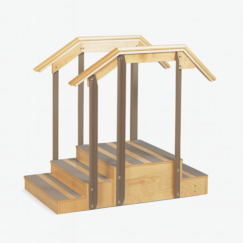 Designed to fit tight rehab spaces without sacrificing functionality, this small straight staircase is ideal for step training, gait rehabilitation, and lower extremity therapy.