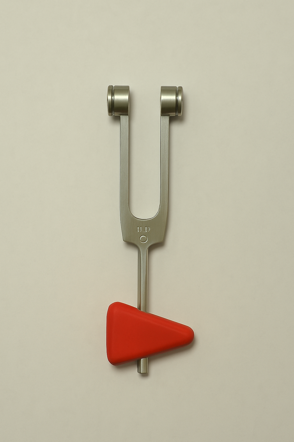 With taylor hammer. With 256 cps. A taylor percussion head is combined with a weighted tuning fork for sensory evaluation.